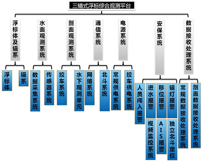 系統整體結構框圖如圖1所示,各個系統分別進行研發設計、加工制作、實驗室測試、岸邊測試,最終安裝于三錨平臺上進行岸邊測試和實海況運行。