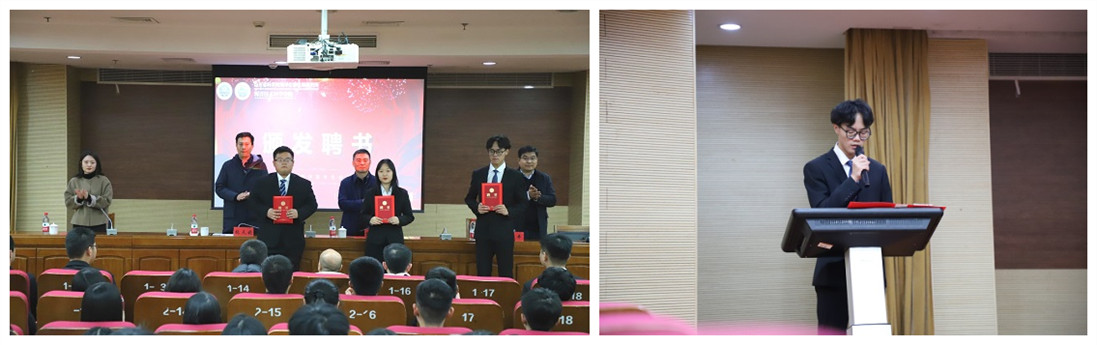 主席團成員申辰代表新一屆學生會作了表態發言,他介紹了學生會的職能,向學生會成員提出了合理規劃工作、明確責任分工的要求,并代表學生會成員表明了認真學習、踏實工作的決心。王天諾帶領全體學生會成員進行學生會入職宣誓,決心以身作則、甘于奉獻,全心全意為同學服務。