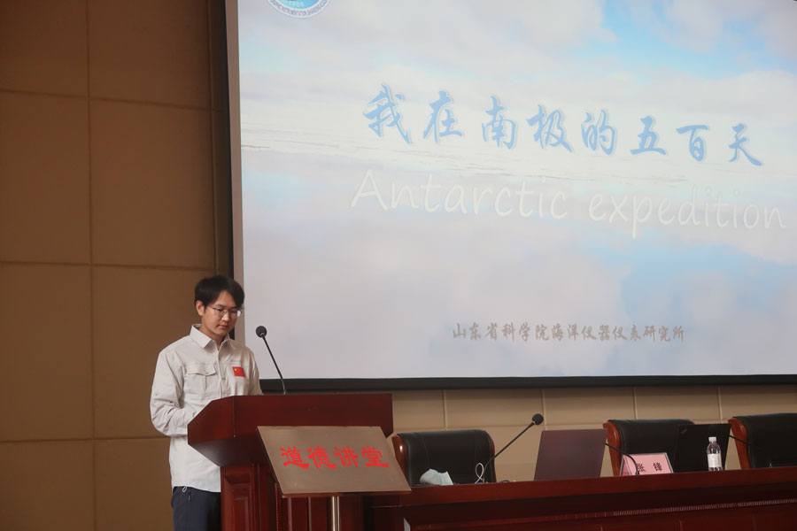 連續在南極執行科考工作任務長達525天的愛崗敬業模范-海儀所科研骨干張鋒同志以“我在南極的500天”為題做先進事跡報告。他用身邊事教育身邊人,以榜樣的力量激勵了全所黨員干部職工學習先進、看齊先進、爭當先進。