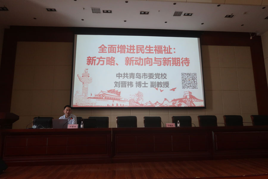 青島市委黨校專家劉晉祎教授以《全面增進民生福祉:新方略、新動向與新期待》為題做了黨的十九大和十九屆四中全會精神輔導報告,他結合疫情防控下的國內外形勢和青島經濟發展情況,系統解讀了目前黨和國家在增進民生福祉方面堅持的最新基本方略,以及在就業、收入、教育、社保、健康五大民生領域的最新動向。使大家更加深刻的認識到:為中國人民謀幸福、為中華民族謀復興是中國共產黨人的初心和使命,帶領人民不斷創造美好生活是我們黨始終不渝的奮斗目標。
