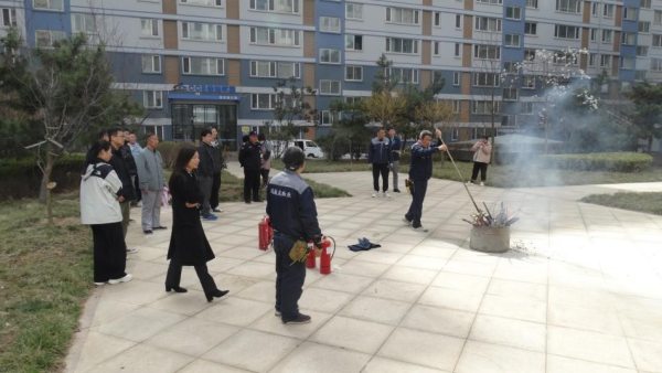 兩地演練活動于3月29日上午10時同時開始,教職工和學生及物業后勤服務人員根據演練方案進行了逃生疏散,并共同學習了滅火器的使用方法。