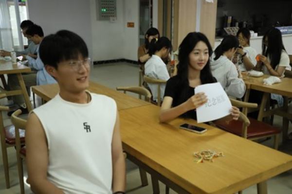 志愿者們提前將“粽子、龍舟、雄黃酒、寧為玉碎不為瓦全”等端午節標志性詞語一一列出寫在紙板上,通過“我比劃,你來猜”的形式,考驗同學們對端午節的了解程度和想象力。三分鐘內猜出最多詞語的隊伍可獲得端午節五彩繩,這不僅是一種物質上的鼓勵,更是一種文化上的傳承。